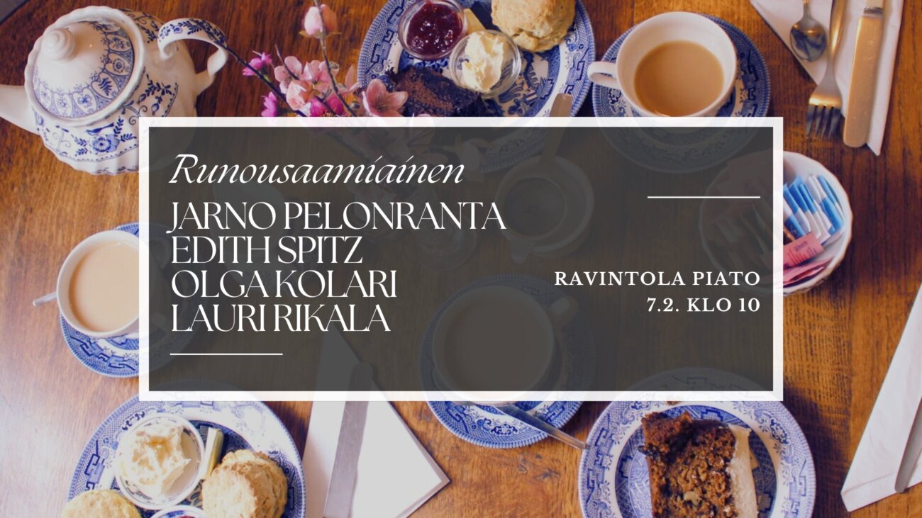 Seuraava tilaisuus sukeltaa säkenöivän runouden ja herkullisen aamupalan yhteispyörteisiin tarjoutuu Vanhan Kirjan Talvessa 7. helmikuuta klo 10. Aloita siis lauantaiaamu suuntaamalla askeleesi Ravintola Piatoon (Mattilanniemi 2, Jyväskylä), jossa aamiaiskattauksen äärellä esiintyvät runoilijat Jarno Pelonranta, Edith Spitz ja Olga Kolari sekä aforisti Lauri Rikala.