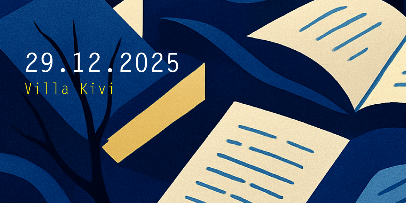 Vielä ennen vuodenvaihdetta pääsemme kuulemaan Eino Santasta, Eeva Turusta ja Tanja Tieksoa, jotka lukevat 29.12. Villa Kivessä otteita teoksistaan, joita ei ole vielä kirjoitettu valmiiksi.