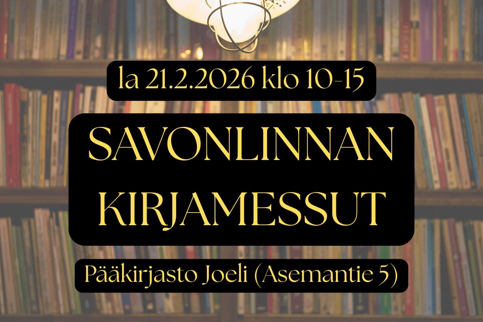 Tervetuloa kaikkien aikojen ensimmäisille Savonlinnan Kirjamessuille pääkirjasto Joeliin lauantaina 21.2.2026 kello 10-15!